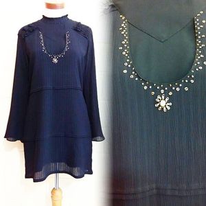 Gaun transparan yang penuh dengan detail bordir dan payet.